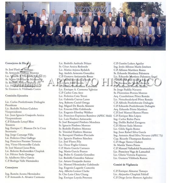 | Descripción : | Las Fotografías fueron digitalizadas de las publicaciones impresas de los Informes Anuales y cada foto Integra en tres columnas los nombres de los Consejeros, Miembros y Comité de Vigilancia. |